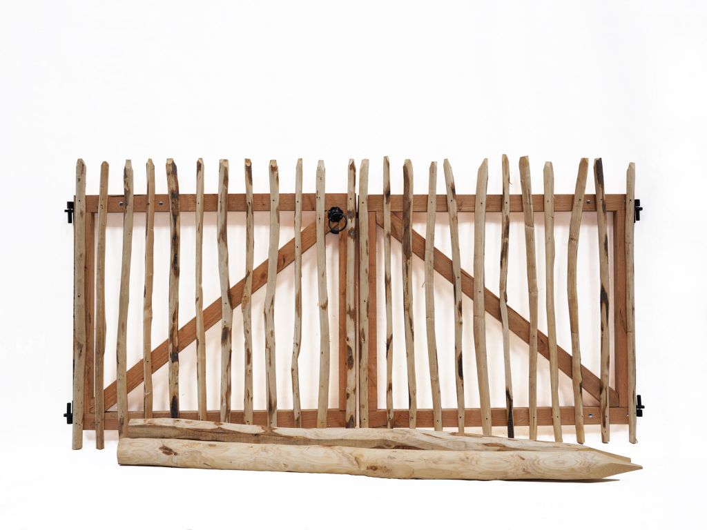 Handgemaakte kastanje toegangspoort inclusief twee poortpalen van 200 cm en voorzien van een bijpassend hang- en sluitwerk. In twee maten leverbaar.