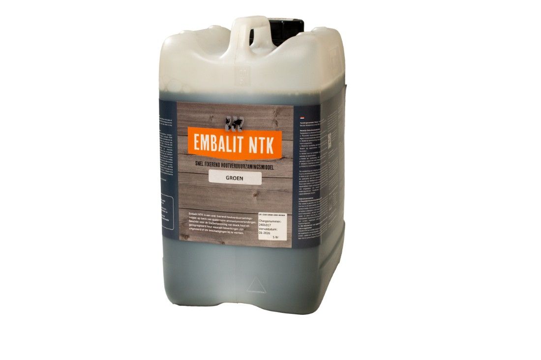 Can à 5 liter, ter afwerking van zaagvlakken van Celfix hout. Ter voorkoming van rot en boktor.